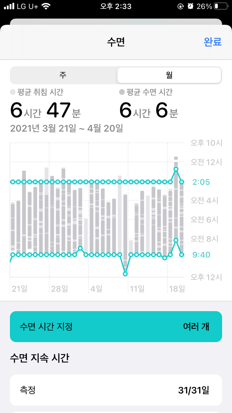 심지어 저번에 유튜브 영상 긴거 틀어놓고 잤는지 11일쯤에 수면시간 1:40 ......