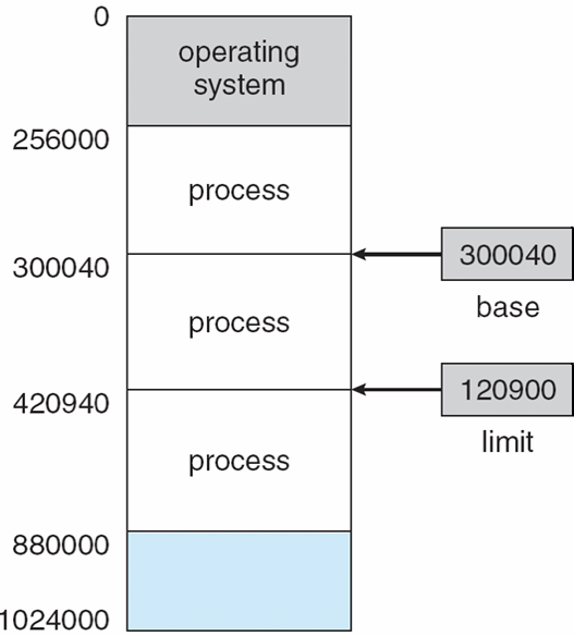 base register(=relocation register)에서 시작해서 limit register까지의 공간을 정의한다