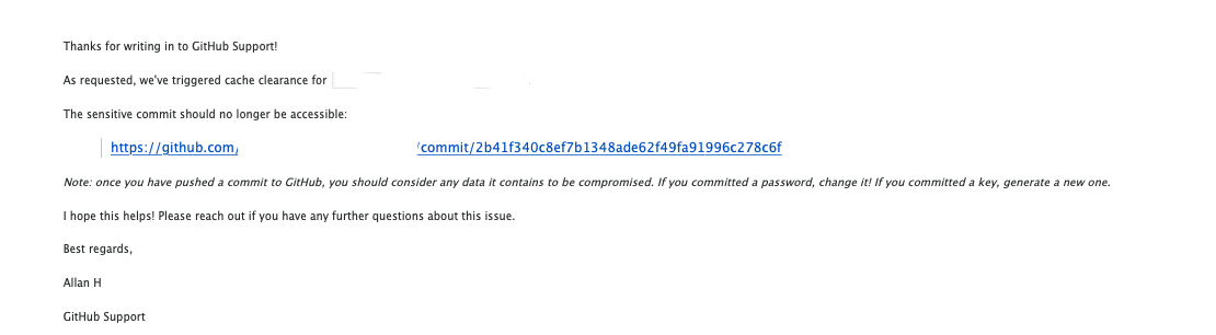 해당 파일에 대해 검색해보자. 이렇게 했을 때, 아직 남아있는 경우가 있다. 이런 경우는 원격 저장소인 Github 자체에서 남아있는 Cache 때문에 나타난다고 한다. 검색으로 입력이 가능해버리면, 사실상 안지운거나 마찬가지이므로 끝까지 처리해주자.