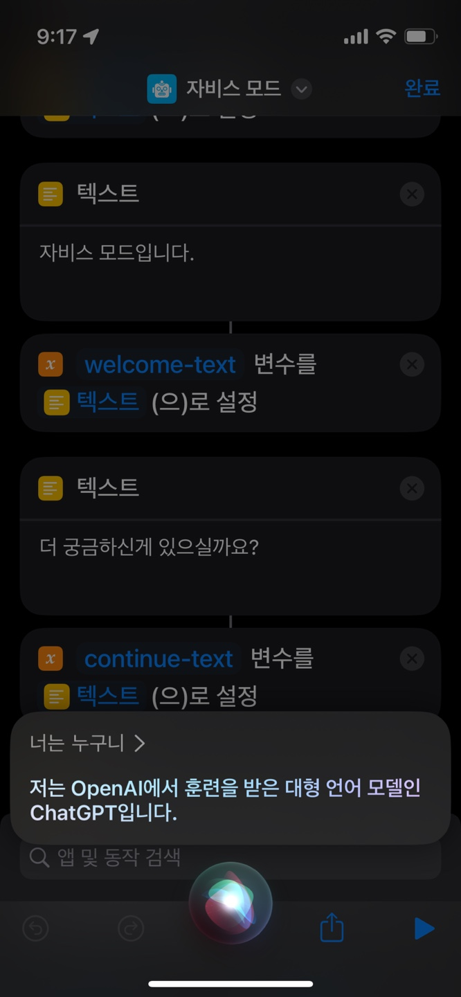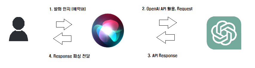 원리는 단순하다. 시리가 OpenAI API를 활용해서 나 대신 Input/Output을 관리하는 것이다.